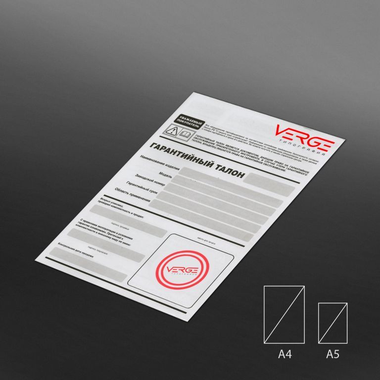 Печатьгарантийных талонов в типографии «Верже РА» – превосходное качество, обширный